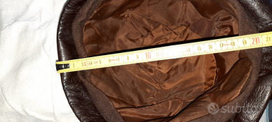 Bellissimo vintage, berretto in morbida pelle marrone, il bordo interno in stoffa marrone e fodera di raso,in perfette condizioni, dimensioni visibili nelle foto