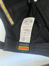 Iconico berretto indossato dai piloti campioni di tutto il mondo. Con il caratteristico design nero e giallo di Pirelli, e i ricami, questo cappello è un simbolo del motorsport. Il prodotto non presenta nessun segno di usura non essendo mai stato utilizzato, evidente anche dalla presenza dell’etichetta.