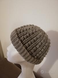 Berretto in lana 100% pura lana vergine. Interamente lavorato a mano. Per donna o adolescente. Misure: altezza cm 22/23, larghezza cm 23. Morbido ed elastico.