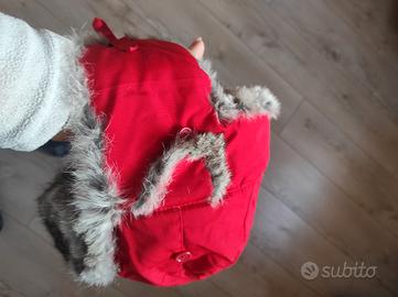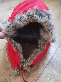 berretto rosso con vera pelliccia di coniglio
