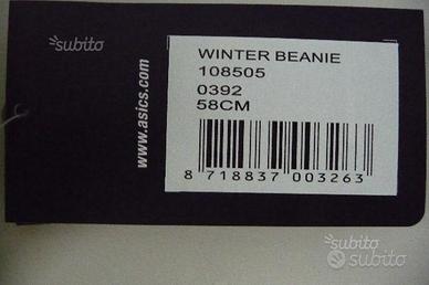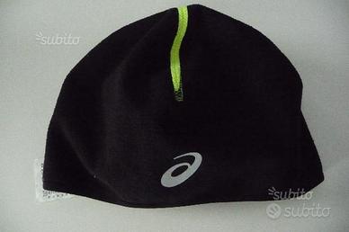 Asics Winter Beanie, berretto sportivo invernale, esterno colore giallo fluo, fori in corrispondenza delle orecchie, interno in tessuto termico nero, misura 58 cm, nuovo, premio di competizione sportiva