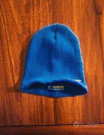 Berretto colore blu acceso con logo Subaru WRC ricamato in giallo.