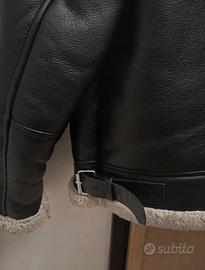 Giubbotto Bershka stile aviator/biker, in ecopelle nera con interno e dettagli in eco-montone color beige. Modello caldo, trendy e super versatile, perfetto per l'inverno.