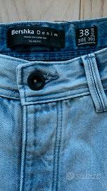 Vendo a 7 euro, Jeans Denim chiaro, marca Bershka Uomo, Taglia 38, Straigh Fit, Gamba sfilacciata. Usati pochissimo, in Ottimo stato.