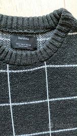 Vendo a 5 euro, Maglione marca BERSHKA, Grigio scuro a motivi geometrici, in acrilico, Taglia M ma veste largo quindi direi una taglia L. Usato poco. Come nuovo.