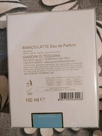 Bianco Latte di Giardini di Toscana è un profumo unisex ambrato gourmand, lanciato nel 2019 e creato da Silvia Martinelli. Caratterizzato da una scia avvolgente e persistente, evoca la dolcezza del latte, del miele e della vaniglia. La sua piramide olfattiva si apre con caramello, cuore di miele e cumarina, e fondo di vaniglia e muschi bianchi.