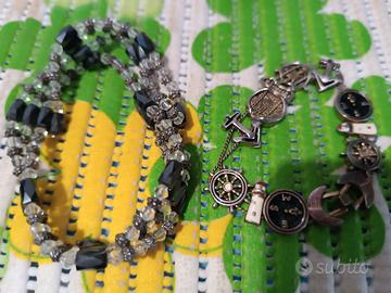 braccialetto con ciondoli mare, con perline marroni, con serpente, rotondo in ferro, nero con perline, intrecciato bianco nero oro, cuoio con ferro, con punte, con calamita, rosso, con ciondoli , in legno colorato. 2 € cadauno