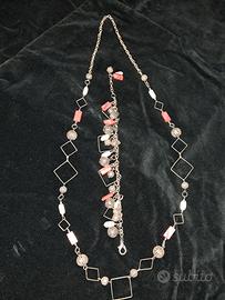 Bigiotteria, 2 parure collane e bracciali con pendenti abbinati di cui una su toni marroni, lunghezza doppia della collana 37 cm, lunghezza del bracciale 19 cm. Altra su toni rosa/ bianco, lunghezza doppia della collana 37 cm, lunghezza del bracciale 21 cm. Zona Roma est o spedizione. 5 Euro l'una.