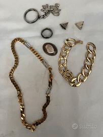 Vendo per inutilizzo bracciale cuoio nero3? Vendo collane con ciondoli varie forme ancora imballate .2?Vendo collane perle bigiotteria .3?Vendo collana a più fili colore oro . 5€. Vendo collana e bracciale acciaio dorato 5€