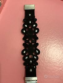 Stupendo bracciale animalier con due bellissimi insetti con ali laccate grigio e nero, corpo tempestato di brillantini neri. Chiusura a calamira molto resistente. Ottima fattura.