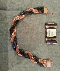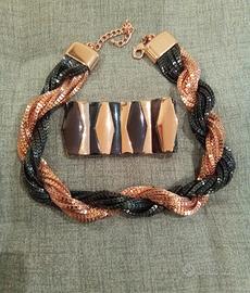 Vendo articolo di bigiotteria Bijou Brigitte, coordinato collana + bracciale in metallo lucido colore oro e nero.
