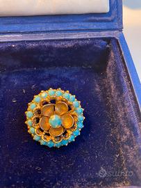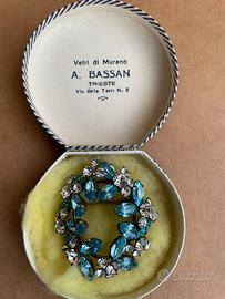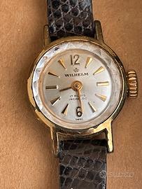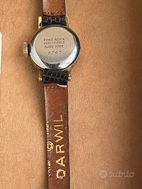 In blocco 4 spille vintage di bigiotteria (presumibilmente anni ‘50/’70) ciascuna con la scatola originale (in quella blu manca il cuscinetto). Fa parte del lotto anche un orologio vintage (presumibilmente anni ‘50/’60) marca Wilhelm, 17 rubini, placcato oro con fondello in acciaio, diametro 17 mm senza corona. Cinturino e scatola Darwil.
