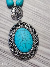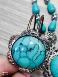 Bigiotteria varia, parure bracciale collana con pietra simil turchese.