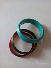 Bracciali Maliparmi taglia unica vari materiali (plastica, legno, tessuto). A Partire da 3€ l' uno. Diametro circa 6, 5 cm. Bracciale in pelle e collana Boss Intropia. Chiedere per informazioni.