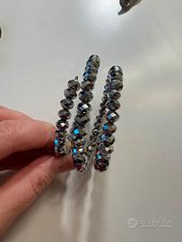 - Braccialetto a spirale con perline sfaccettate color argento o grigio, effetti cristalli o ematite.