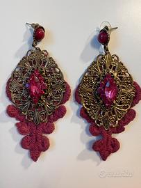 - Orecchini stile chandelier/artigianali con macrame viola e cristalli
