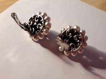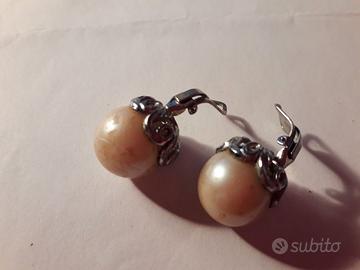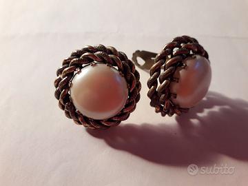 - un paio di forma rotonda con al centro una grossa perla bianca a forma di bottone e tutto intorno circondata da 2 intrecci color bronzo dorato. A €20
