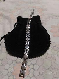 3- bracciale da uomo in acciaio placcato argento design a maglie alternate con dettagli dorati chiusura a scatto