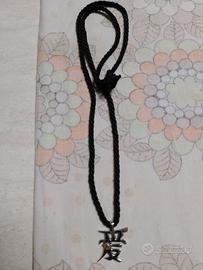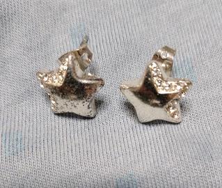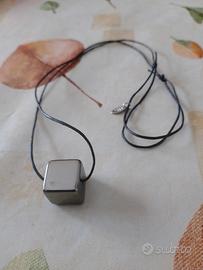 Vendo a € 1 al pezzo bigiotteria in metallo in buone condizioni 1- collana in metallo con simbolo dell' amore color argento con cordino nero 2- collana in metallo con simbolo di cubo in color argento con cordino 3- braccialetto con pietre rosa a forma di perla alternate a pietre nere a forma di stella e perline in metallo dorato. Chiusura a moschettone 4- orecchini a forma di stella a foro color argento lucido decorati con brillanti luminosi