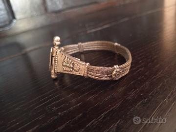 Una collana (penserei più un girocollo) ed un bracciale degli anni '70 che non fanno parte di un completo anche se sono identici nel materiale è nel tipo di lavorazione a catena intrecciata a maglia piatta e chiusura a perno inversa. Oggetti usati ma oggi arrivano a noi in condizioni discrete per poterli ancora indossare ed il loro prezzo s'intende già compreso di spedizione che sarà postale con tracciabilità
