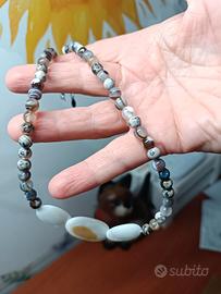 Vendo una parure collana e bracciale e una collana realizzate con perline di vetro ( le collane sono girocollo) allego foto.