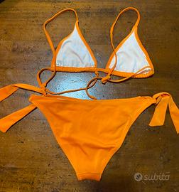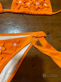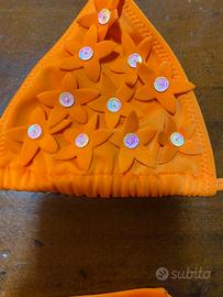 Bikini a due pezzi con reggiseno e mutande taglia 1 con fiori arancio cuciti e paillettes