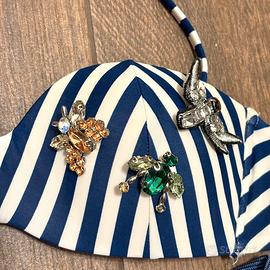 •Fascia preformata a righe bianco e blu 🤍💙 con spille (rimovibili)