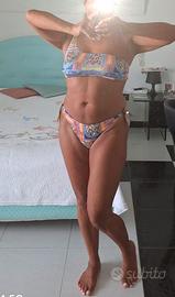 Bikini Changit composto da fascia monospalla e slip annodato , il dietro ha un'arricciarura centrale, coppe estraibili.