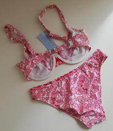 Costume da bagno due pezzi da donna con motivo floreale.