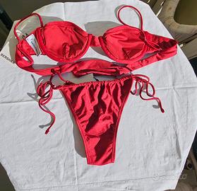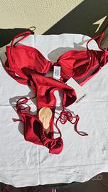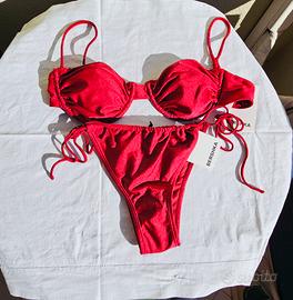 bikini 2 pezzi di bershka reggiseno push up con coppe tg L veste piccolo e slip taglia M nuovi con cartellino Colore bordeaux