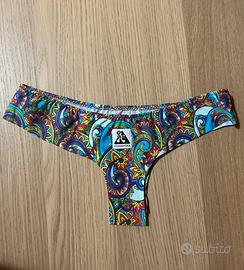 Costume hippie formentera, taglia unica Top giallo con doppi lacci, possibilità di fare tanti incroci Mutanda brasiliana
