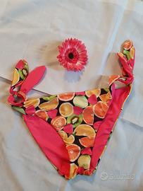 Bikini composto da reggiseno preformato taglia 3 e slip taglio classico e regolabile con i laccetti laterali in taglia S/M.