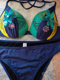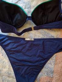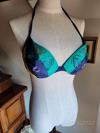 reggiseno imbottito e si allaccia dietro il collo con nastro e sulla schiena con gancetto, slip normale, ottima vestibilità