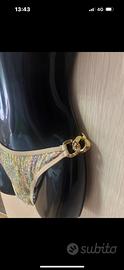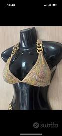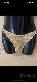Mai indossato Bikini a triangolo e brasiliana con paillettes dorate Con protezione sullo slip