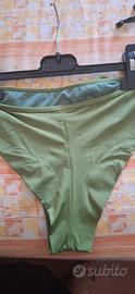 Indossato pochissimo, volant su entrambi i pezzi, reggiseno allacciato dietro con coppa