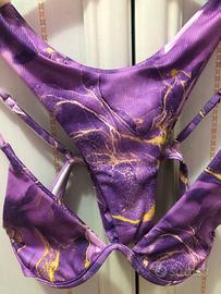 Set Bikini Viola con Stampa Marmo a Costine – Taglia M