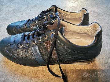 Vendo scarpa da uomo in vera pelle marchio Bikkembergs color blu scuro con fascia laterale blu cangiante, usate poco e in condizioni perfette.