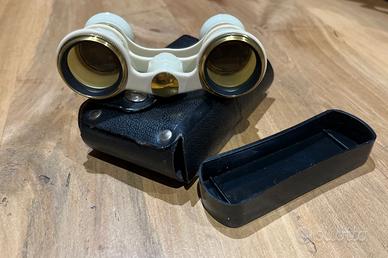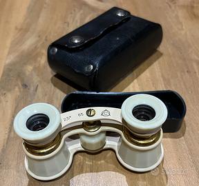 Binocolo da teatro vintage Ingrandimento 2.5x prodotto in URSS Color avorio e oro custodia in pelle