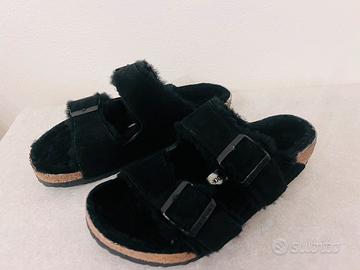 Ciabatte nere mod . Arizona in pelliccia sintetica numero 39. Come nuove, usate 1 sola volta. Complete di scatola originale.
