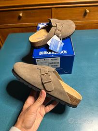 Birkenstock boston bs color taupe n 37 nuove con etichetta. Iconico sabot unisex con tomaia in morbida pelle scamosciata . Stile neutro e elegante .