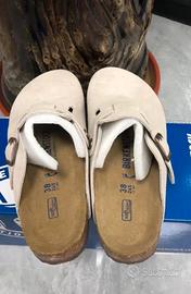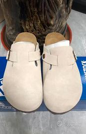 Vendo Birkenstock Boston originali in pelle scamosciata colore beige, modello classico molto apprezzato per comfort e stile.