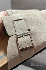 Vendo Birkenstock Boston originali in pelle scamosciata colore beige, uno dei colori più eleganti e richiesti del modello Boston.