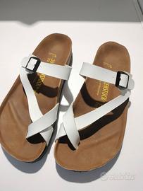 Birkenstock donna bianche nr 39 , non usate a causa numero errato. Praticamente nuove come si può vedere sia dal plantare che dalla suola .