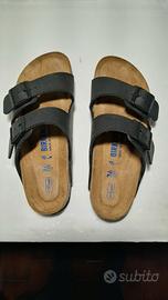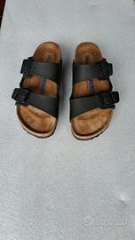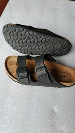 Paio di ciabatte/sandali donna Birkenstock originali neri n°36, praticamente nuovi! Non servono aggettivi per la descrizione dell'oggetto in quanto universalmente conosciuto e apprezzato. Trattasi di acquisto errato nel 'n.ro'. Non presente la scatola, in quanto buttata l'indomani dell'acquisto, datochè riposte nella scarpiera. Senza la scatola, purtroppo non possibile il cambio. Calzati solo per la prova in negozio e oggi per due passi dentro casa. Purtroppo rivelatesi troppo piccole. Vendo a meno di metà prezzo!