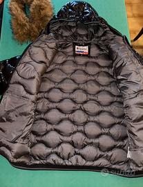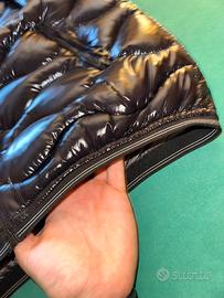 Modello invernale colore nero lucido con cappuccio + pelliccia e rimuovibile per uno stile elegante alla moda
