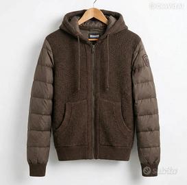 Blauer USA dal design ibrido, elegante e sportiva allo stesso tempo. Il capo alterna una calda lavorazione in maglia sul busto a maniche e cappuccio in tessuto tecnico trapuntato.