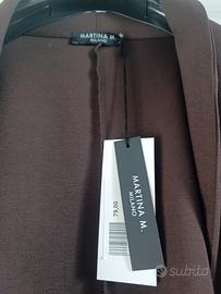 Vendo raffinata giacca blazer firmataMartina M. Milano, un brand che è sinonimo di qualità e stileMade in Italy. Il capo si distingue per il suo design ricercato: una chiusura asimmetrica con eleganti drappeggi frontali che definiscono la silhouette in modo impeccabile.