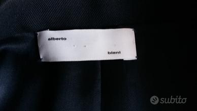 Blazar blu Alberto Biani originale,modello sfiancato, tasche con patta, bottoni bruniti, due taschini interni uno con bottone, dietro 2 spacchetti laterali Tessuto 100% lana Fodera 100% viscosa Misura di riferimento Spalle 44 Torace 94 Lungh. 74 Vendo a 20 euro