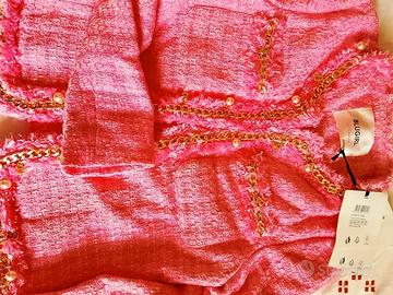 Blazer rosa con charms color oro nuovo, mai indossato, con ancora etichetta.
