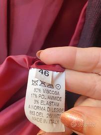 Color Bordo a righe nere - Taglia 46 - 3 bottoni - con martingala (cintura sul dorso posteriore) Composizione: 80% viscosa 17% Poliamide 3% Elastan - Made in Italy - Spedisco a vostro carico o consegno a mano Milano zona Prada
